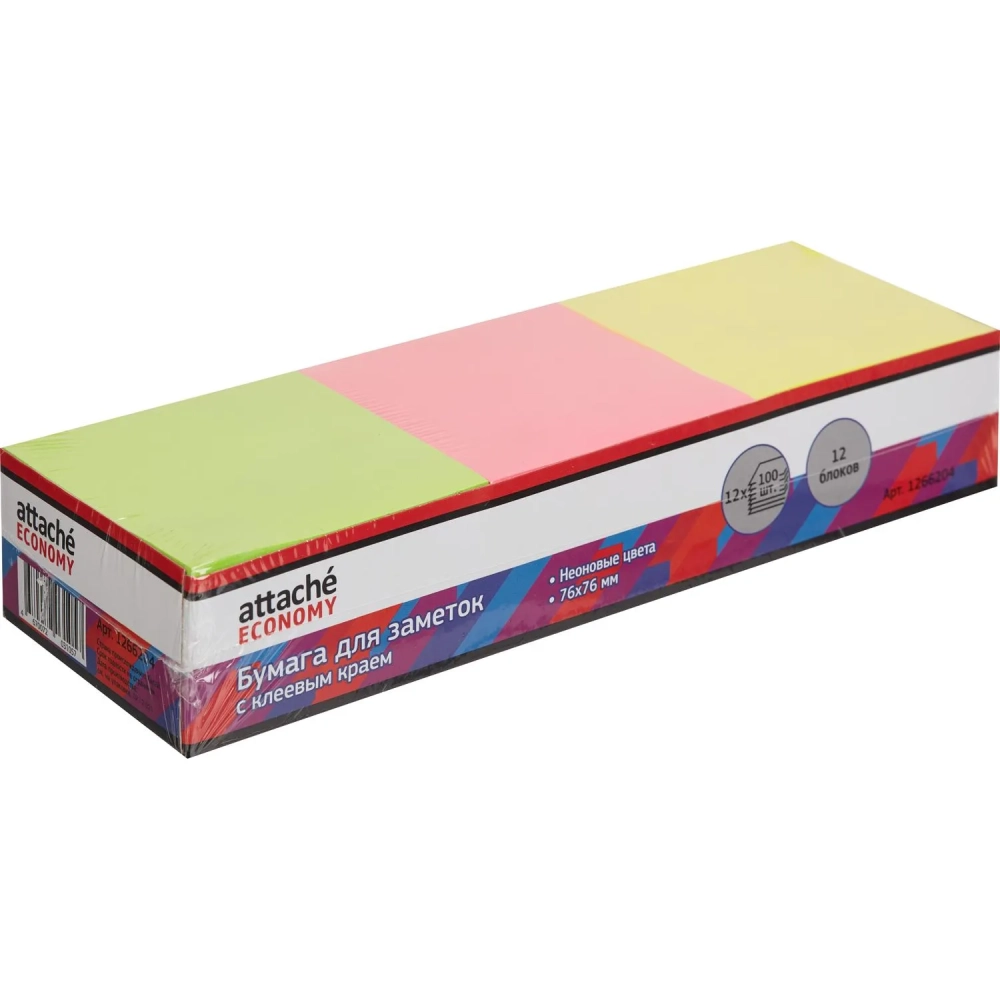 Стикеры с клеев.краем 76x76 мм, 100л в блоке, неон 12 бл