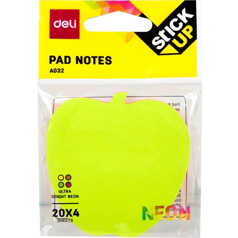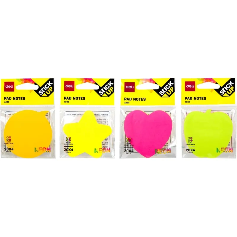 Стикеры с клеевым краем Deli 76х76 мм,20 листов,неон-е,форма в асс-те