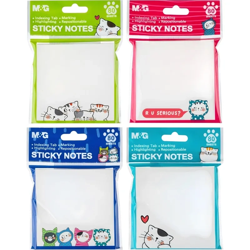 Стикеры с клеевым краем M&G So Many Cats, 76x76 мм, 80 л, в ассортименте