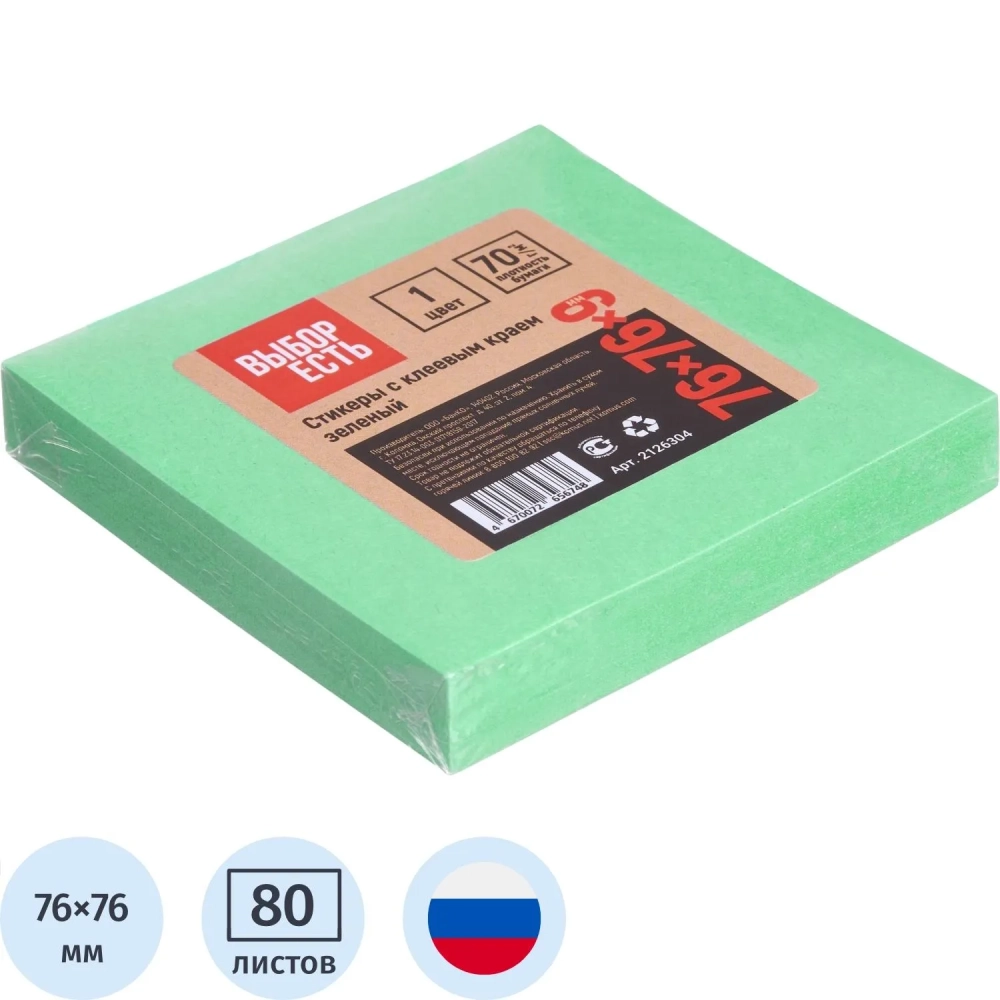 Стикеры Выбор есть с клеев. краем 76х76, интенсив, зеленый 100л
