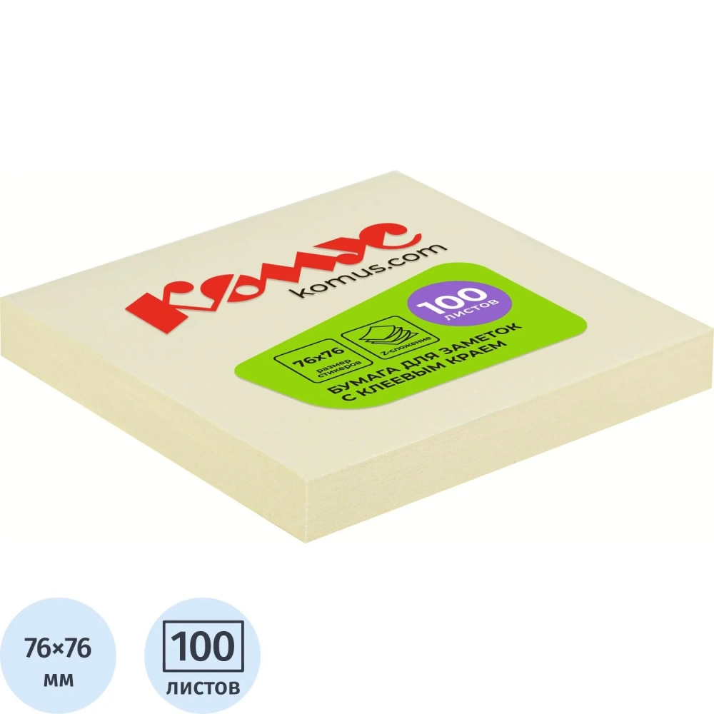 Стикеры Z-сложения КОМУС с клеев.краем Z-блок 76х76 желтый 100л