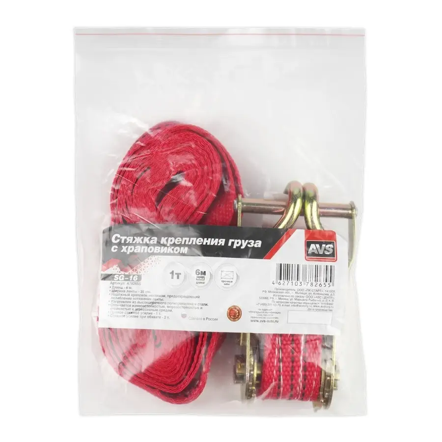 Стяжка крепления груза 6 м, 1 т, 35 мм с храповиком AVS SG-16