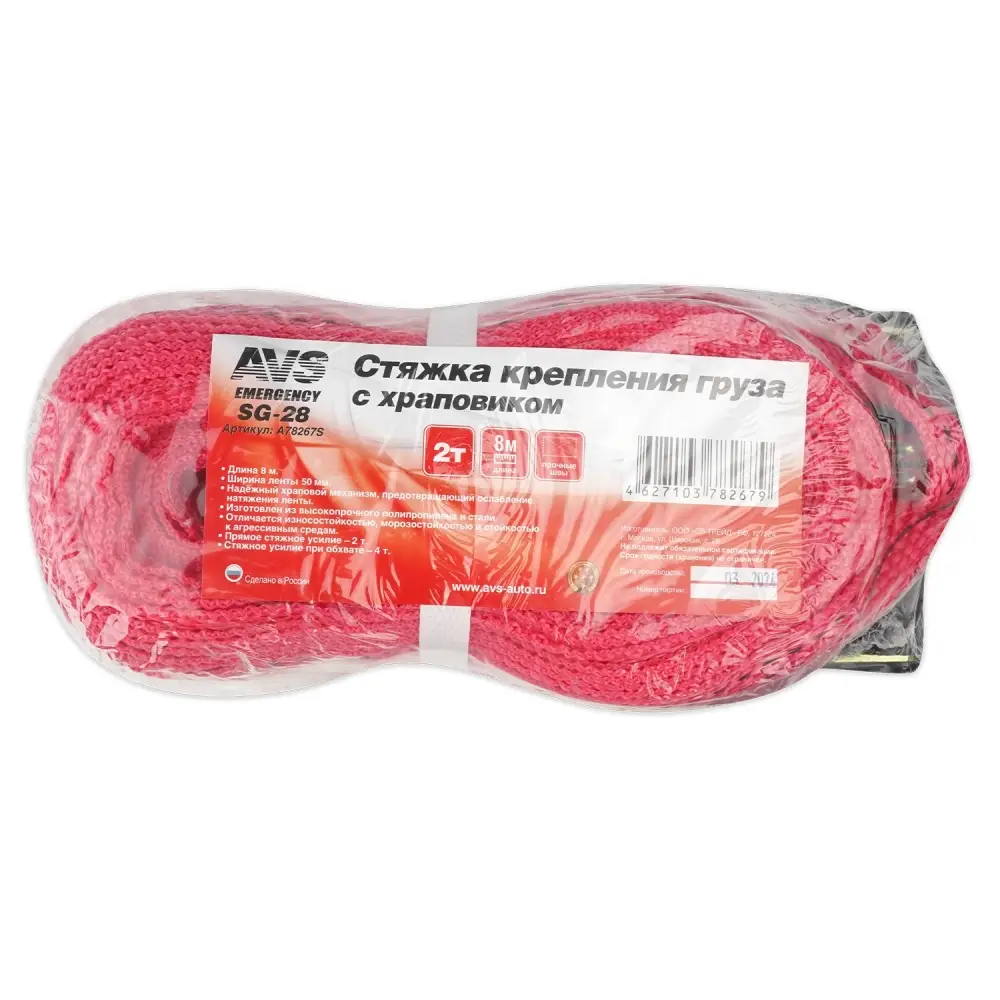 Стяжка крепления груза 8 м, 2 т, 50 мм с храповиком AVS SG-28