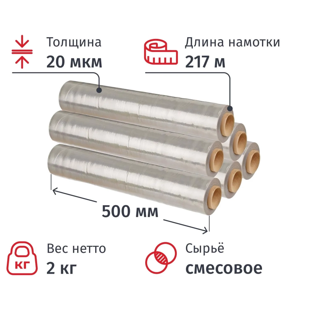 Стрейч-пленка смесовая для ручн.уп 20мкм 50см 217м 2кг нетто(6шт/уп)