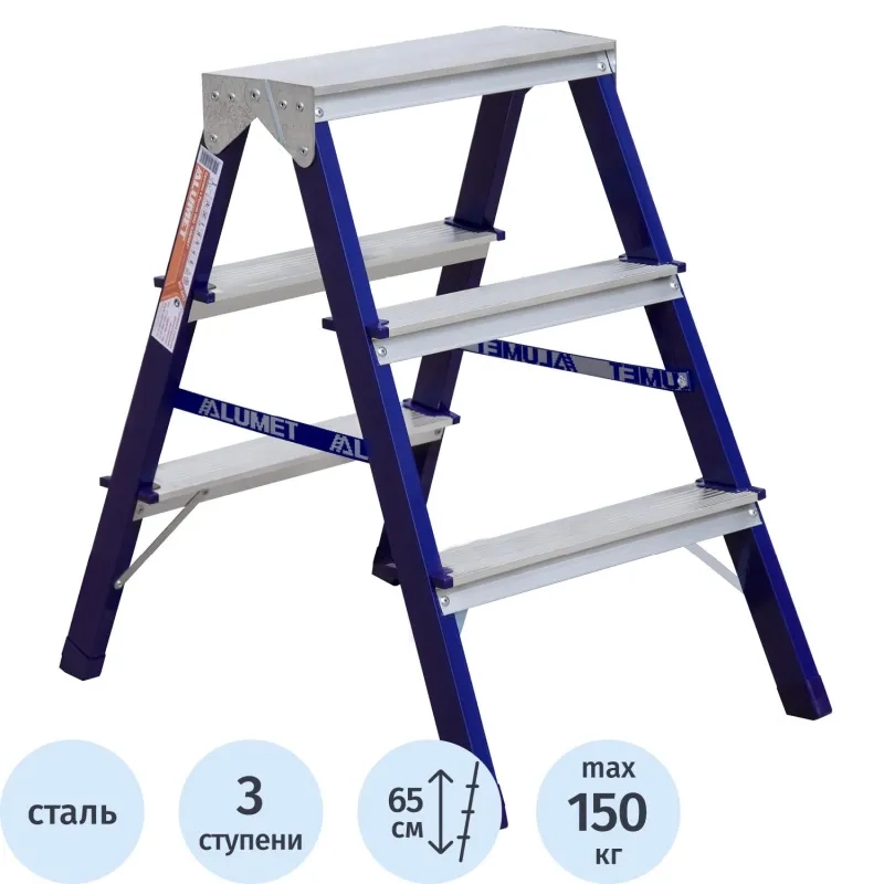 Стремянка Алюмет двухсторонняя стальная с алюмин. ступенями 3 ст. MD8203