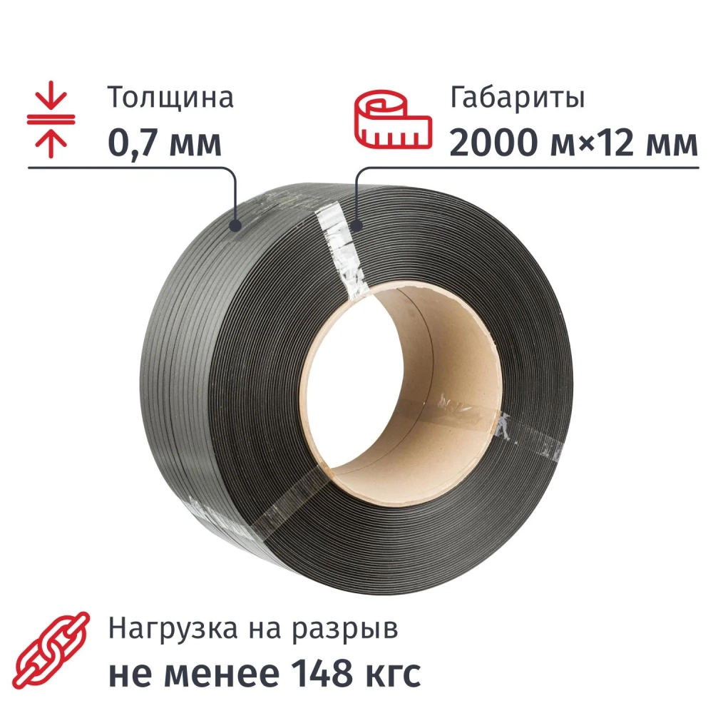 Стреппинг лента Полипропиленовая 12мм х 0,7 (2000 м.) Серая