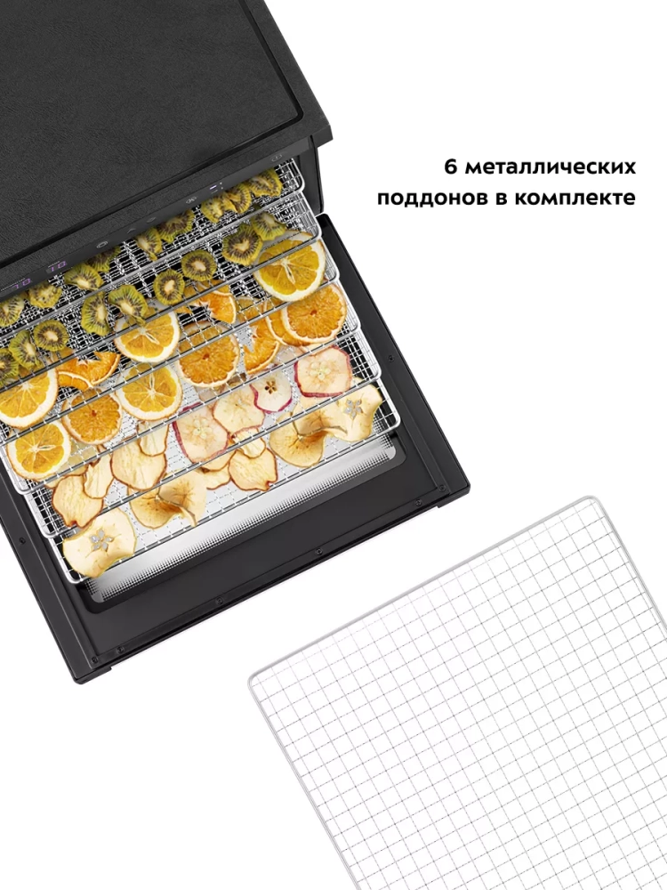 Электрическая сушилка Kitfort КТ-1962 предназначена для сушки овощей, фруктов, ягод, грибов, корнеплодов, трав и зелени, а также мяса и рыбы, хлеба.