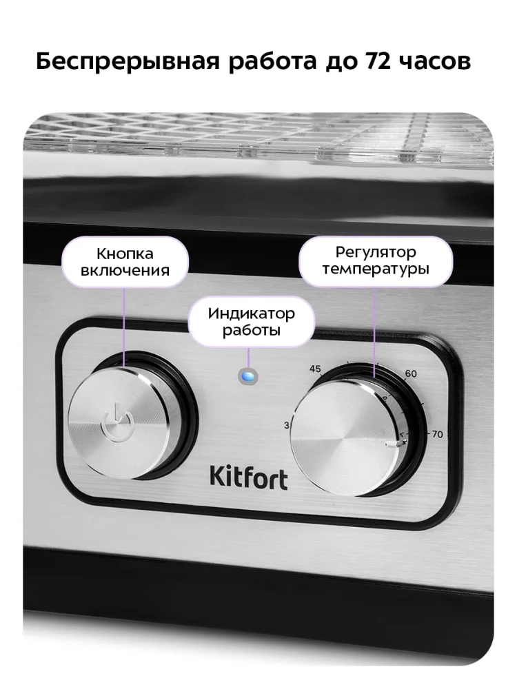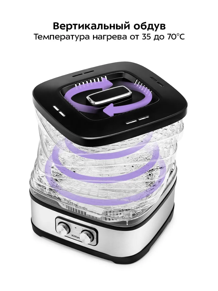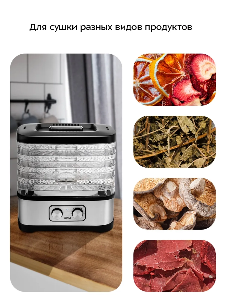Электросушилка Kitfort — это надежный помощник для сушки овощей и фруктов, который позволяет сохранить все полезные вещества. Сушилки Kitfort отличаются высокой эффективностью и простотой в использовании. Дегидратор Kitfort — это идеальное решение для тех, кто хочет наслаждаться вкусом свежих овощей и фруктов круглый год. Сушилка для овощей и фруктов Kitfort — это техника, которая станет незаменимой на вашей кухне, обеспечивая качественную сушку овощей и фруктов.