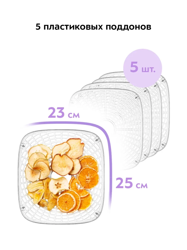 Сушилка для овощей и фруктов имеет несколько поддонов, что обеспечивает возможность одновременной сушки различных продуктов. Поддоны легко снимаются и моются, что упрощает уход за техникой. Электрическая овощесушилка Kitfort — это идеальное решение для тех, кто ценит качество и надежность. Сушилки Kitfort отличаются высокой производительностью и долговечностью, что делает их незаменимыми помощниками на кухне.