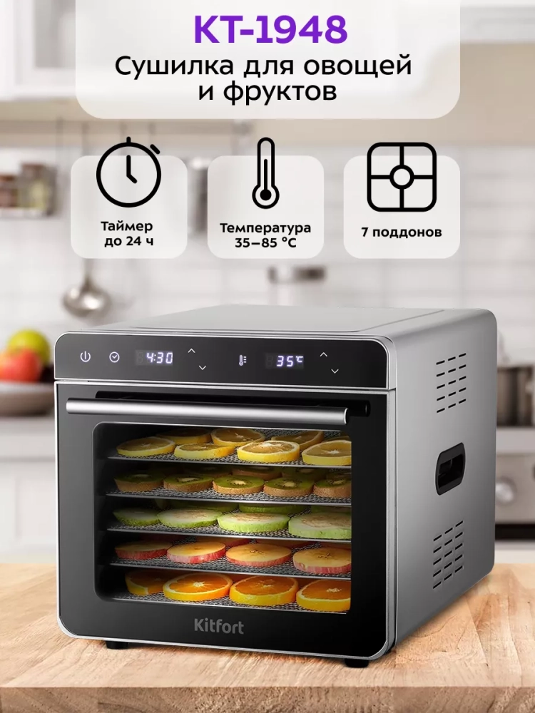 Сушка овощей и фруктов становится проще благодаря интуитивно понятному управлению устройством Kitfort КТ-1948 — надежной помощнице на вашей кухне!
