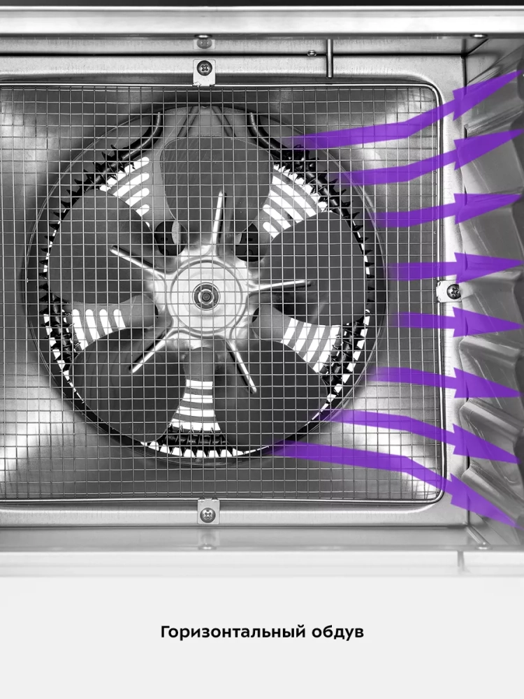 Сушилка оснащена мощным нагревательным элементом и вентилятором с лопастями большого диаметра. Это обеспечивает равномерное распределение нагретого воздуха по всему объему камеры устройства. Благодаря горизонтальному обдуву минимизируется смешение запахов при одновременной сушке разных продуктов.