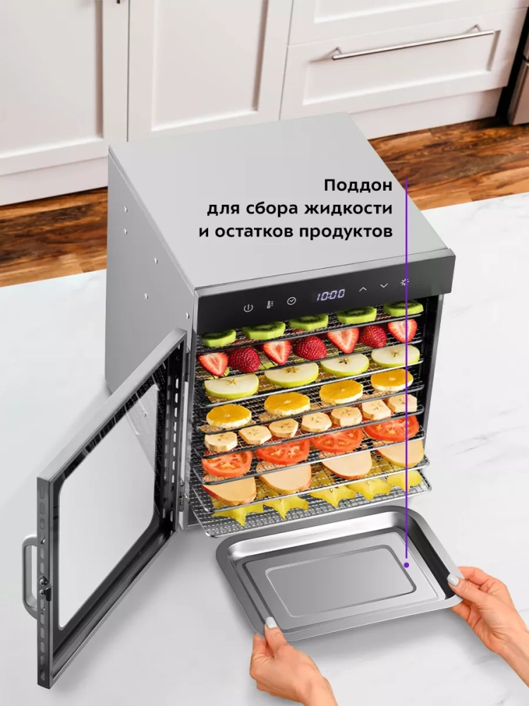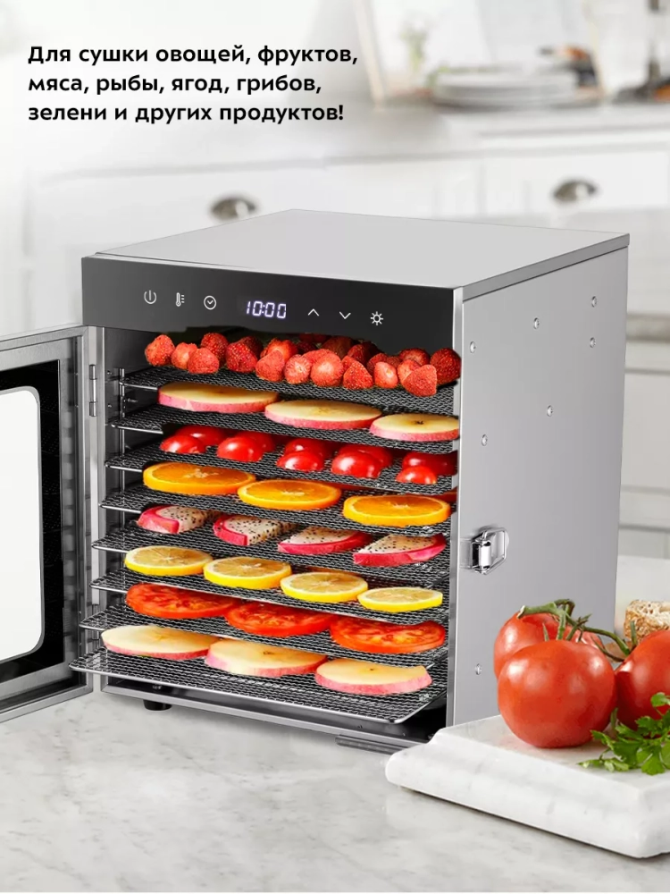 Эта электрическая сушилка для овощей и фруктов имеет несколько поддонов, что позволяет одновременно сушить различные виды продуктов, включая ягоды, зелень и даже мясо. Овощесушилка Kitfort — это надежная техника, которая обеспечит качественную сушку овощей и фруктов. Сушилки Kitfort отличаются высокой эффективностью и долговечностью, что делает их идеальным выбором для любой кухни.