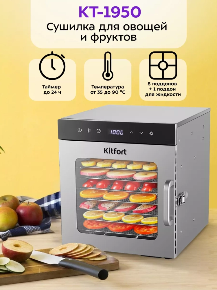Сушилка для овощей и фруктов Kitfort — это идеальное решение для тех, кто ценит качество и надежность. Дегидратор Kitfort позволяет сушить овощи, фрукты, грибы и другие продукты, сохраняя их полезные свойства. Электрическая сушилка для овощей и фруктов Kitfort — это надежная техника, которая обеспечит качественную сушку продуктов. Сушилки Kitfort — это идеальный выбор для вашей кухни, обеспечивающий качественную сушку овощей и фруктов.