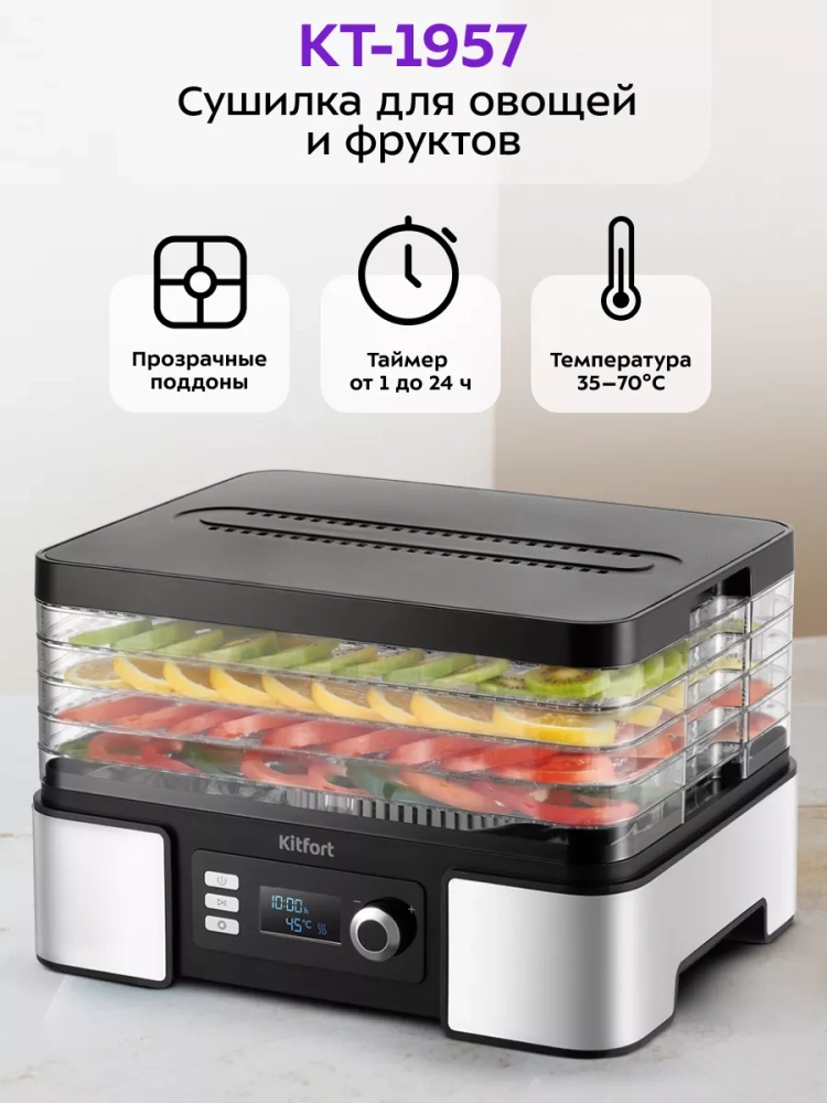 Овощесушилка КТ-1957 — это надежный выбор для тех, кто ценит качество и удобство использования.