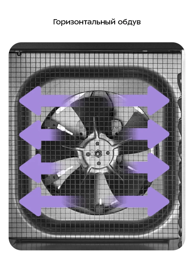 В сушилку установлены два нагревательных элемента и два вентилятора, обеспечивающих равномерное распределение нагретого воздуха по всему объему камер. Благодаря горизонтальному обдуву смешение запахов при одновременной сушке разных продуктов минимально.