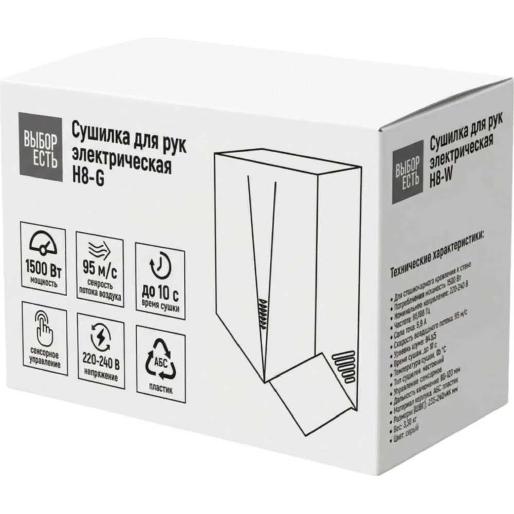 Сушилка для рук электрическая 1,5кВт H8-G серая