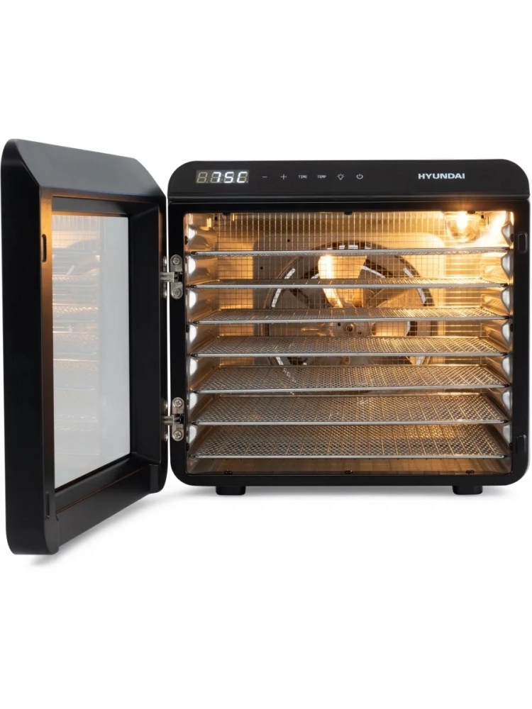 Сушилка Hyundai HYFD-8801 — инвестиция в здоровое питание и возможность наслаждаться вкусом лета круглый год. Станет незаменимым помощником для тех, кто ценит натуральность, качество и удобство в приготовлении пищи, открывая новые возможности для кулинарного творчества.