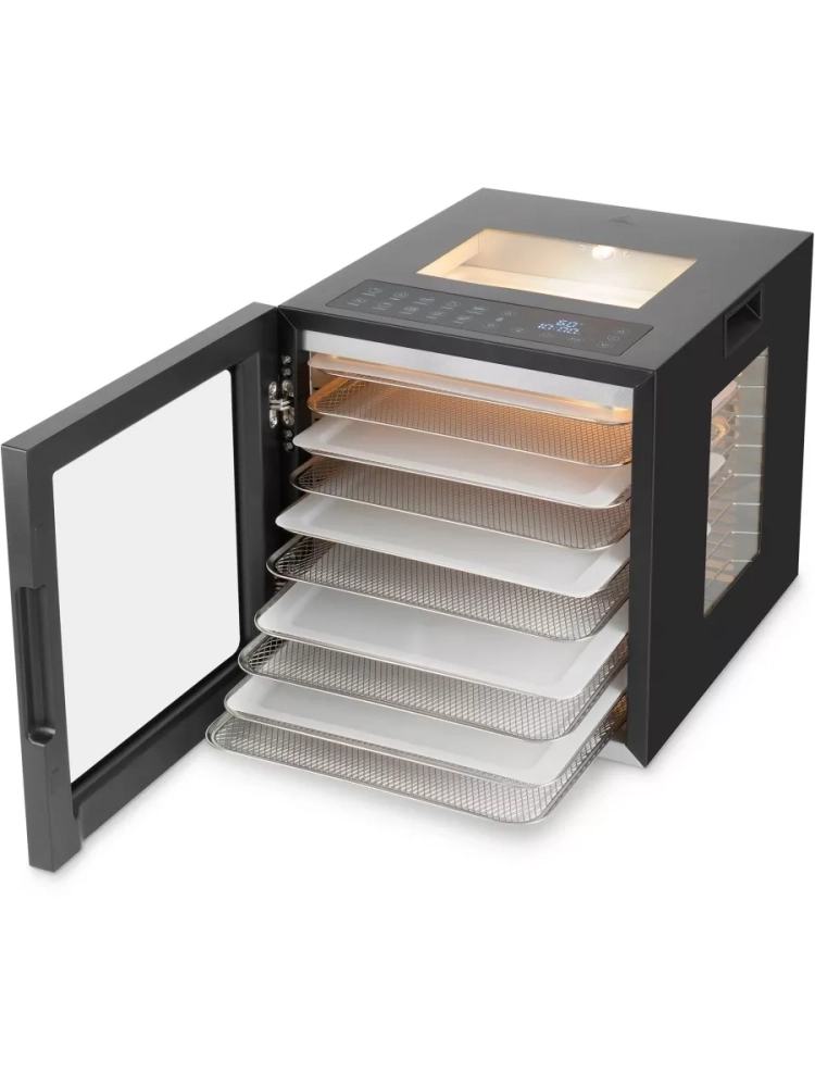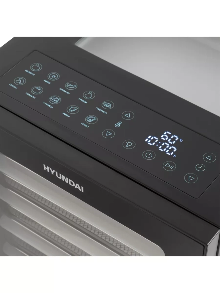 Обладая мощностью 850 Вт, Hyundai HYFD-8804 обеспечивает равномерное и эффективное обезвоживание продуктов. 10 уровней сушки с 20 просторными поддонами позволяют обрабатывать большое количество ингредиентов одновременно, что делает процесс заготовки быстрым и удобным. Диапазон регулировки температуры от 35°C до 75°C дает возможность подобрать оптимальный режим для каждого вида продуктов, будь то сочные фрукты, нежные травы или плотные куски мяса. Сенсорное управление и встроенный таймер делают эксплуатацию сушилки интуитивно понятной и легкой.