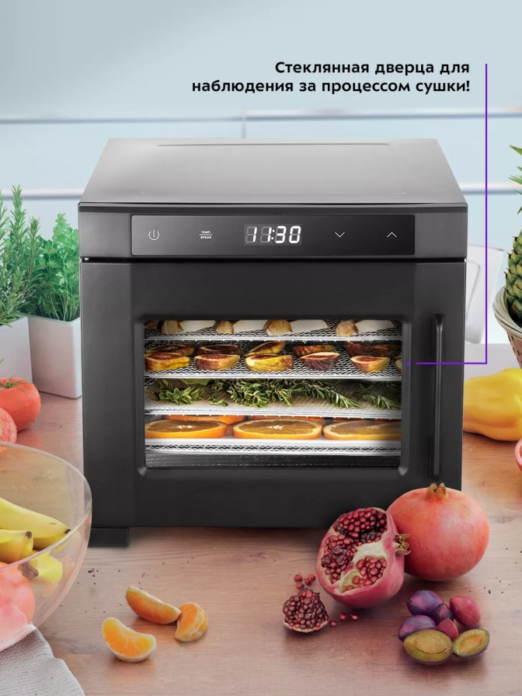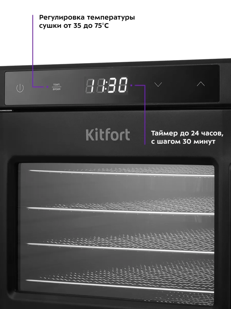 Эта кухонная техника отличается простотой в использовании и уходе. Черный корпус сушилки гармонично впишется в интерьер любой кухни, а компактные размеры позволят разместить её даже в небольших пространствах. Электрическая сушилка Kitfort — это не просто предметы для готовки, а настоящая находка для тех, кто ценит качество и удобство.