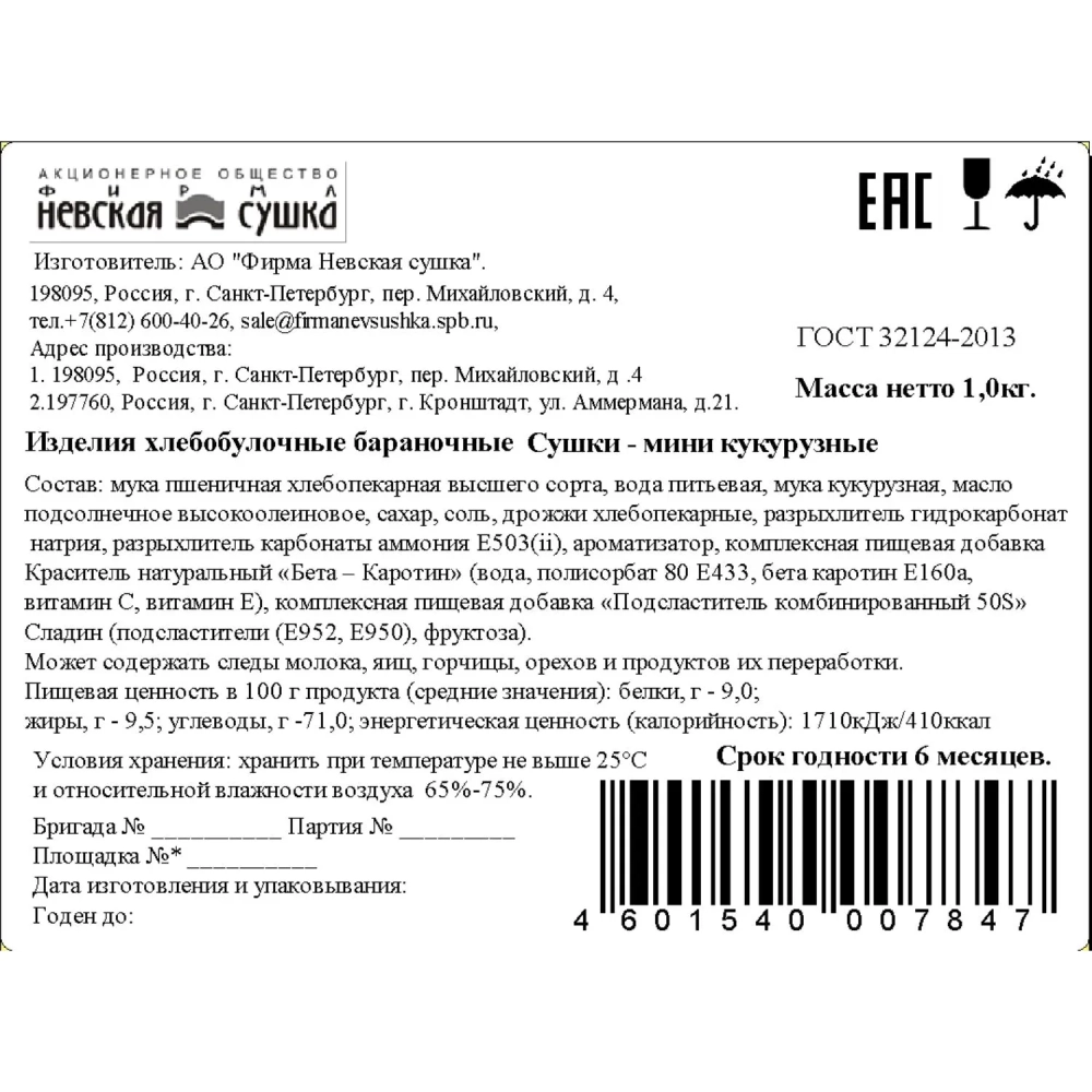 Сушки мини Невская Сушка Кукурузные, ТВ-кор, 1кг
