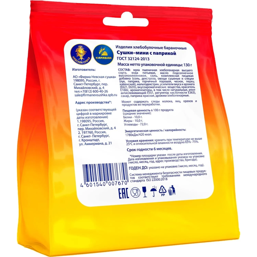 Сушки мини Невская Сушка с паприкой, 130г