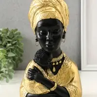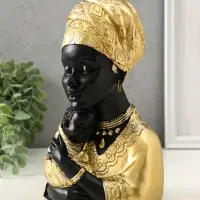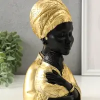 Бюст полистоун "Африка - мать и дитя" чёрный с золотом 12,5х10х21,5 см