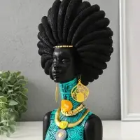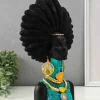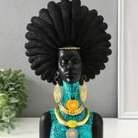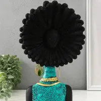 Бюст полистоун "Африканка в бирюзовом" чёрный 18,5х8х29,5 см