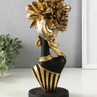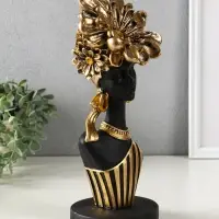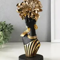 Бюст полистоун "Девушка с золотым цветком, в полосатом наряде" чёрный 12,3х11,5х31,5 см