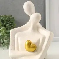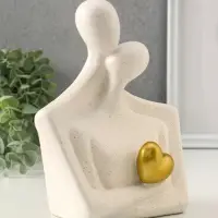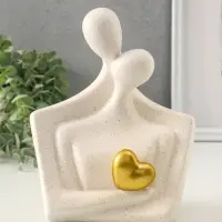 Бюст полистоун "Влюблённые - поцелуй, с золотым сердцем" песочный 15х9х18,5 см