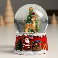 Сувенир полистоун водяной шар "Дед Мороз с олешкой в лесу" 7х7х9 см