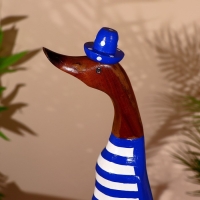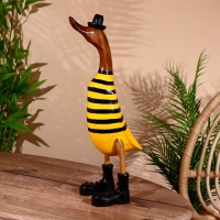 Сувенир полистоун "Зайка в шляпке и дождевике с воробышком" 13,5х6,5х7 см