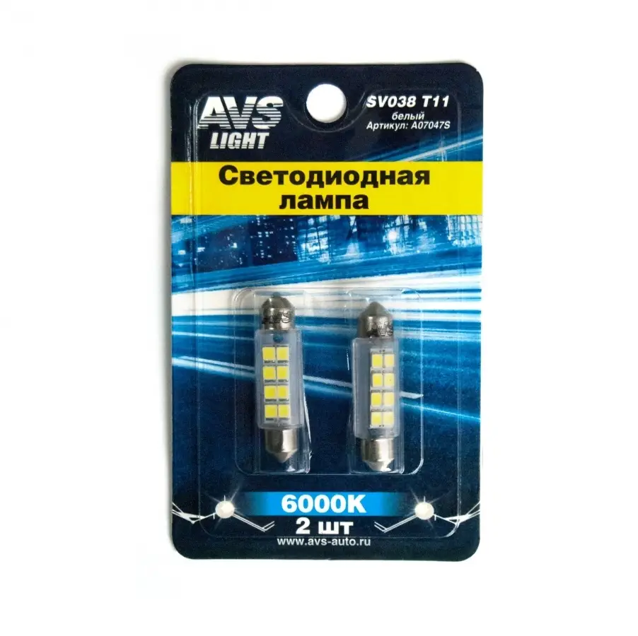 SV038 T11/белый/ (SV8,5) 8SMD 2835, 42 мм, блистер 2 шт.