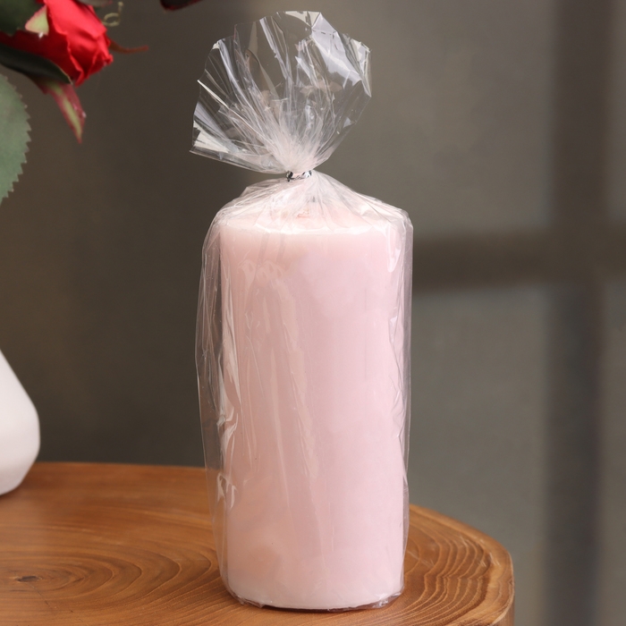 Свеча-цилиндр гладкая, 5х10 см, светло-розовая, 6 ч
