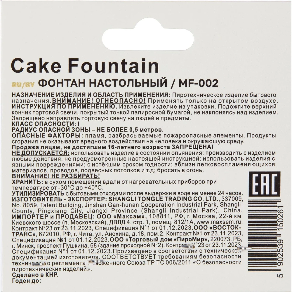 Свеча для торта 17,5см. 60сек. 4шт/уп, MF-002