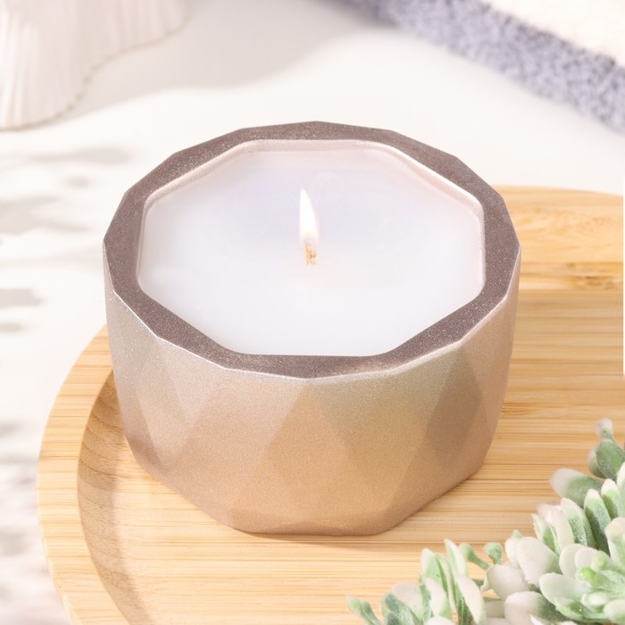 Свеча "Мрамор" в подсвечнике из гипса, 8,5х6см, шампань