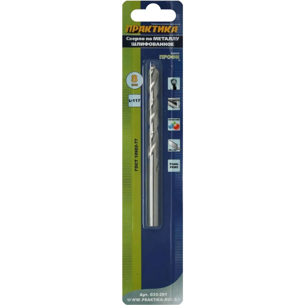 Сверло по металлу ПРАКТИКА Р6М5 8,0 х 117 мм блистер 033-291