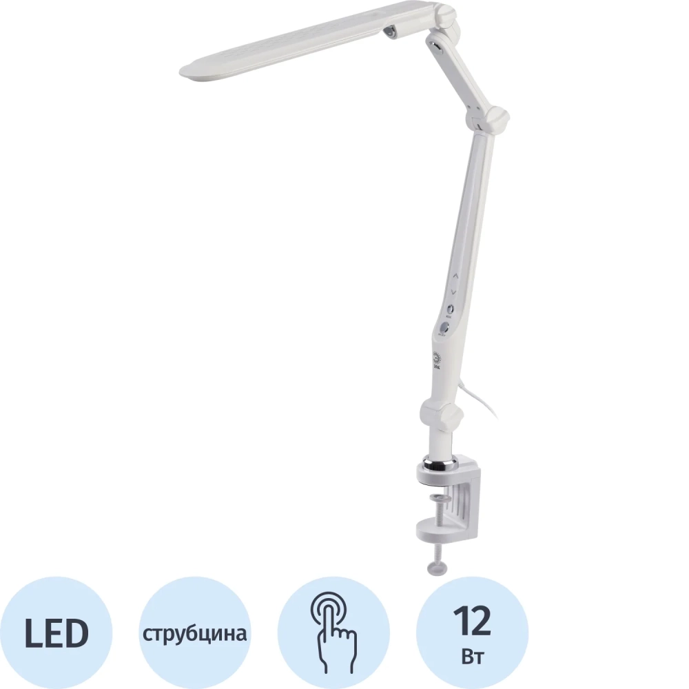 Светильник настольный ЭРА NLED-496-12W-W светодиодный на струбцине, белый