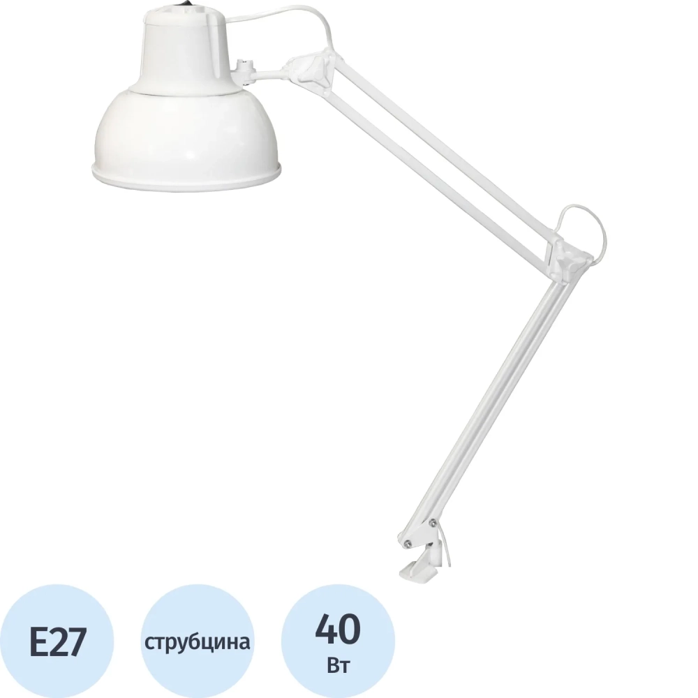 Светильник Трансвит Бета-К МС на металлической струбцине Е27 60W белый