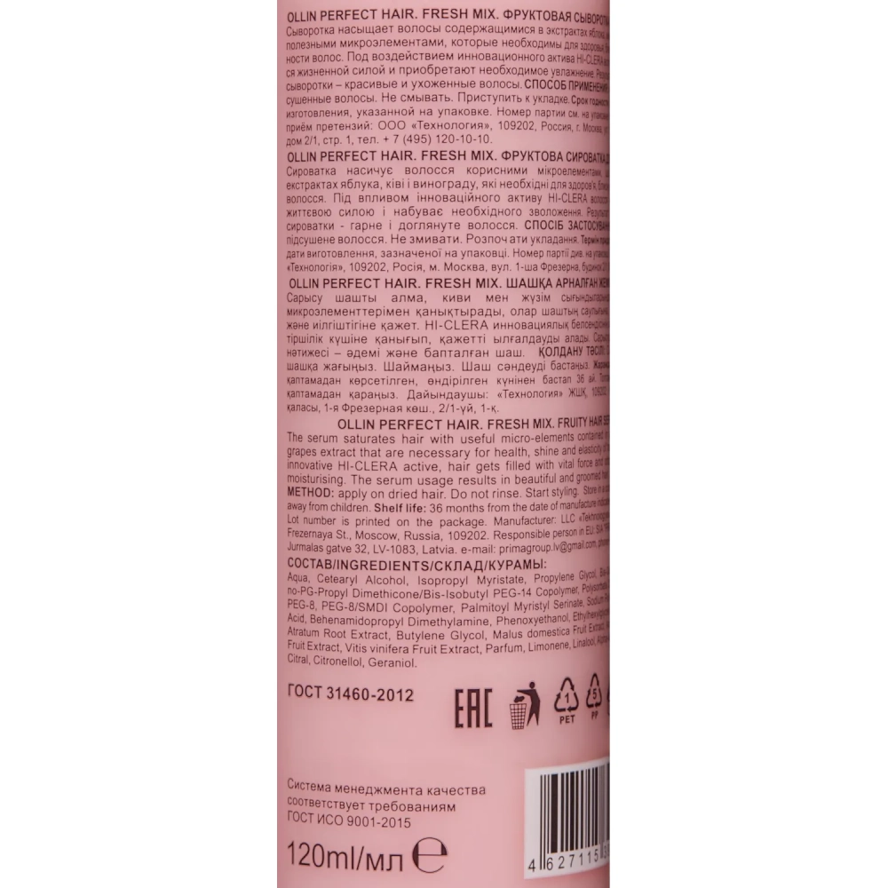 Сыворотка фруктовая для волос OLLIN PERFECT HAIR FRESH MIX 120мл