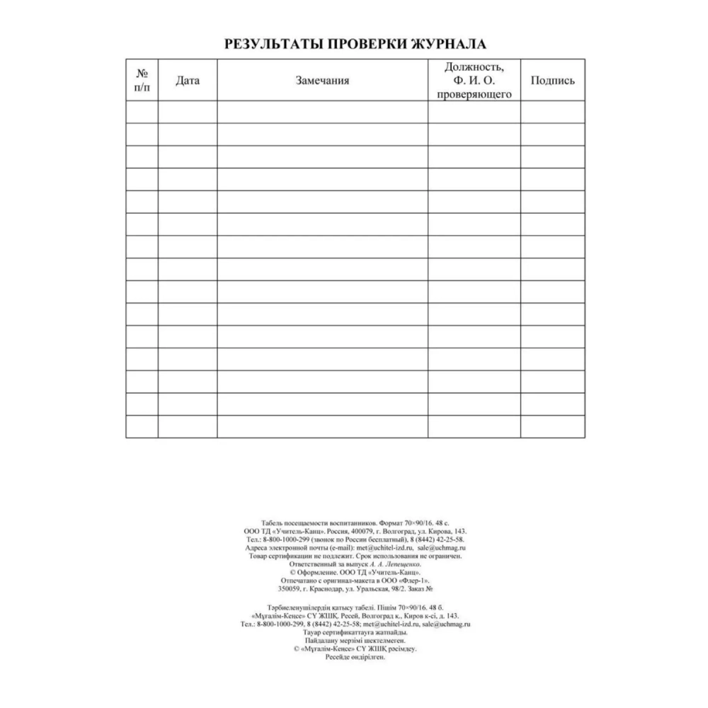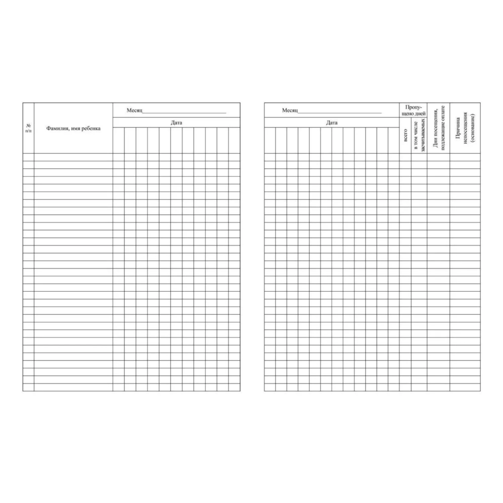 Табель посещаемости воспитанников А5,офсет блок 65г,облож.160г,48стр КЖ-500