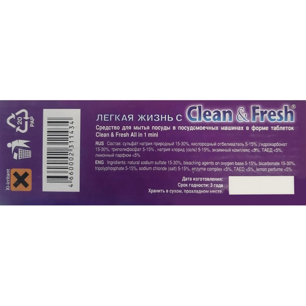 Таблетки для ПММ Clean&Fresh Allin1 mini tabs 100шт/уп