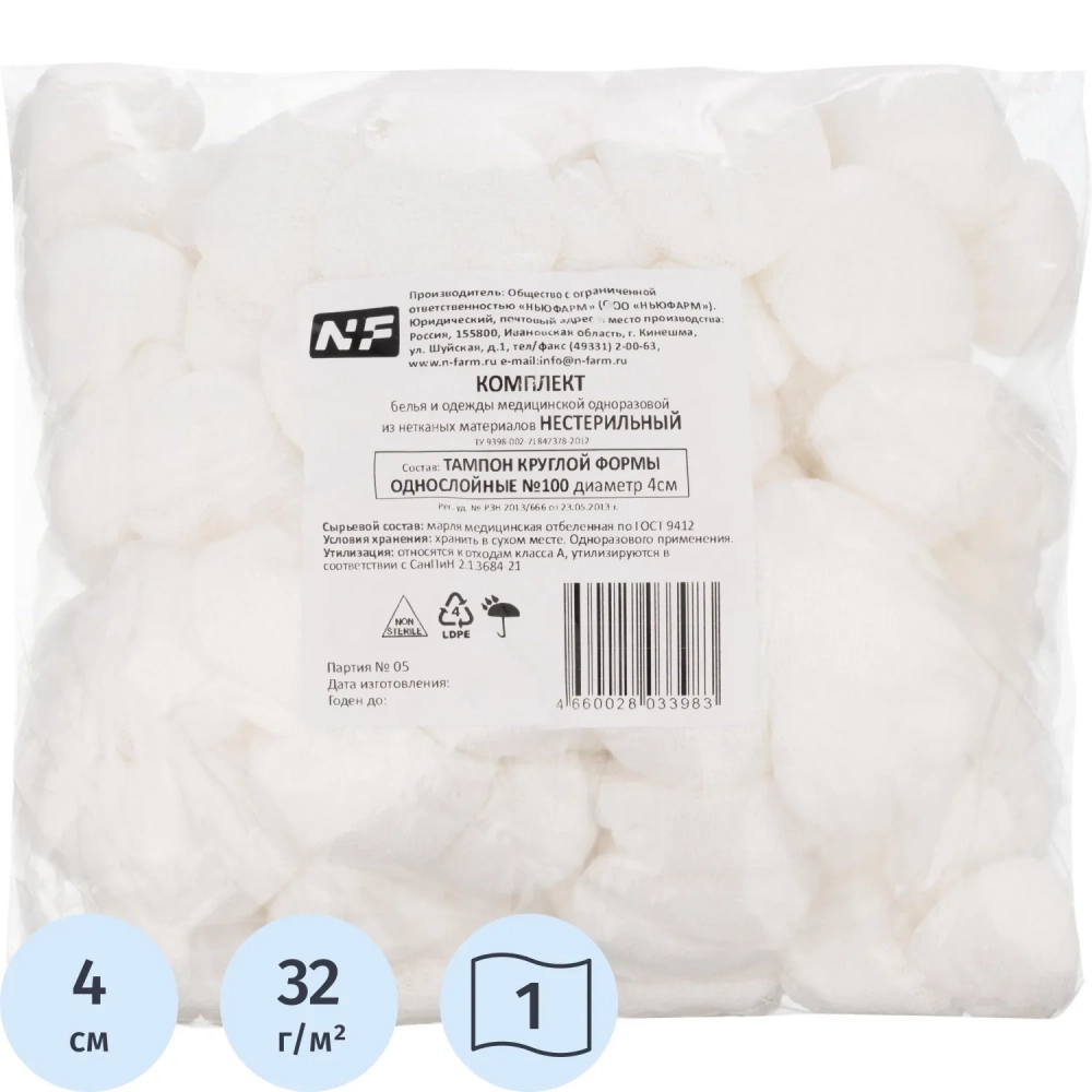 Тампоны марлевые,круг.,н/ст,пл.32,диам.4 см,100шт/уп ШК33983