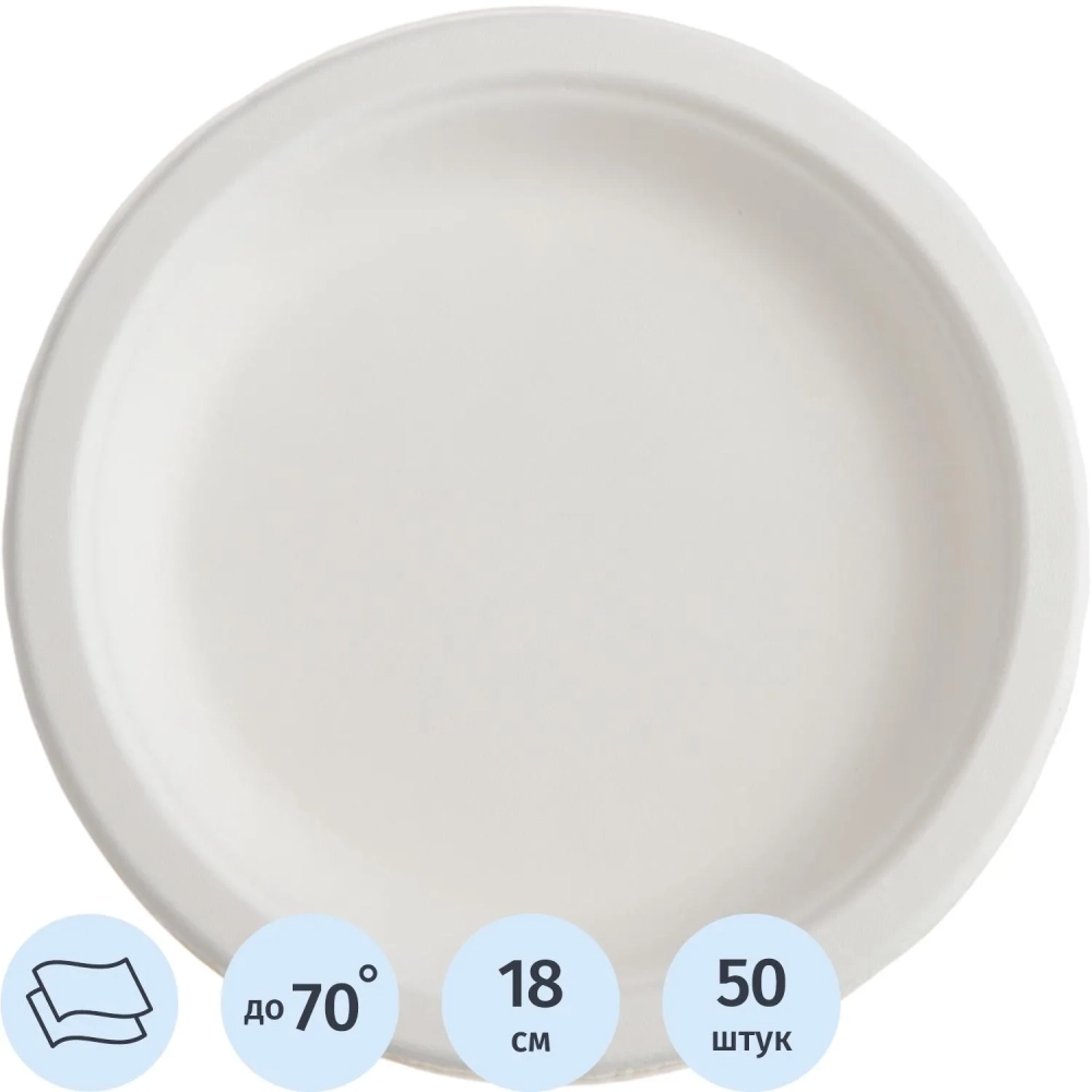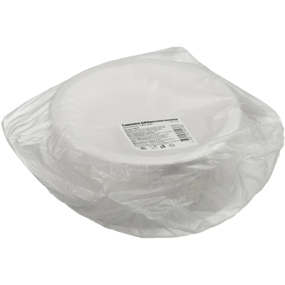 Тарелка одноразовая биоразлагаемая D=180 мм, 50шт/уп (138657)
