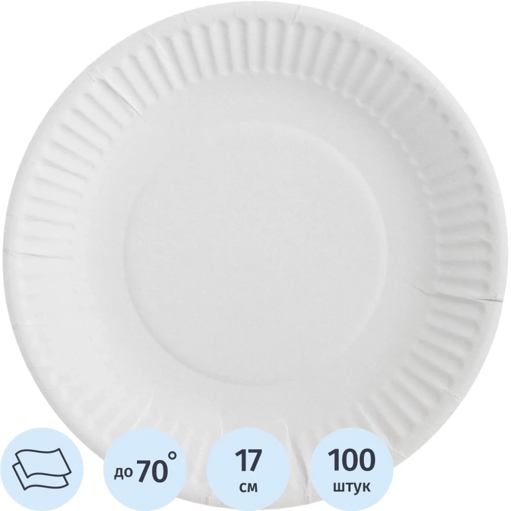 Тарелка одноразовая бум., d 170 мм, белая, КОМУС, 100шт./уп.10уп./кор
