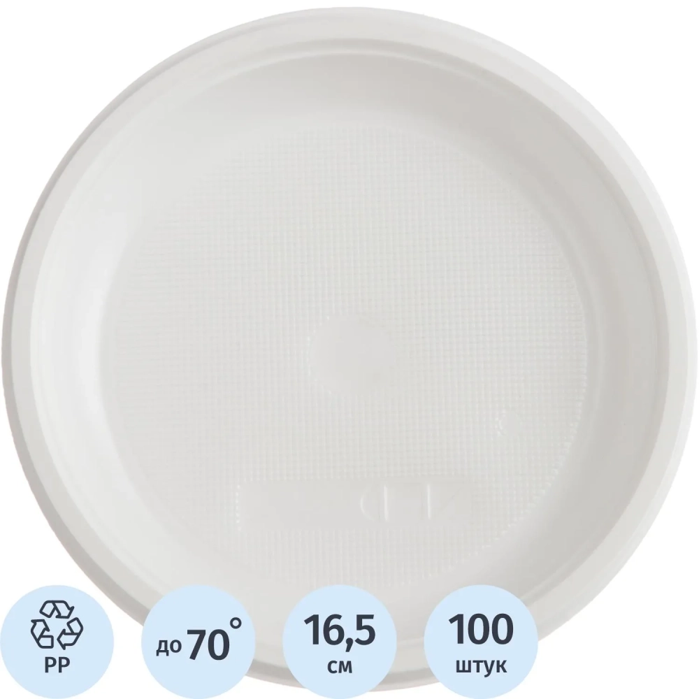 Тарелка одноразовая d 165мм, десертная, белая, ПП, 100шт/уп