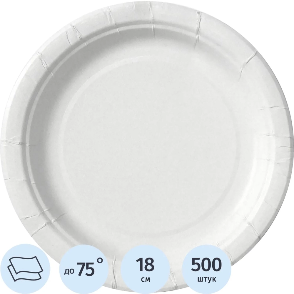 Тарелка одноразовая из ламинированной бумаги д 180 мм, 500 шт/кор