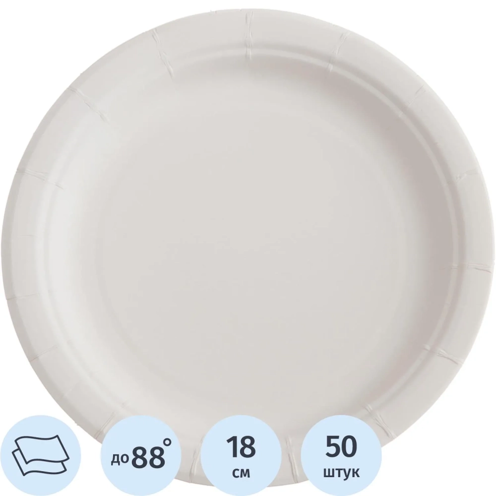 Тарелка одноразовая из ламинированной бумаги д 180 мм, 50шт/уп