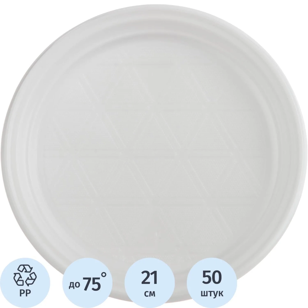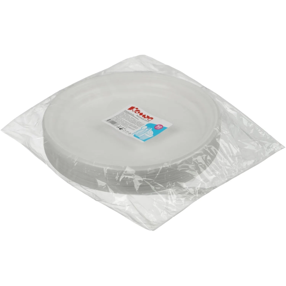 Тарелка одноразовая Комус d 210мм, белая, ПП, 50шт/уп