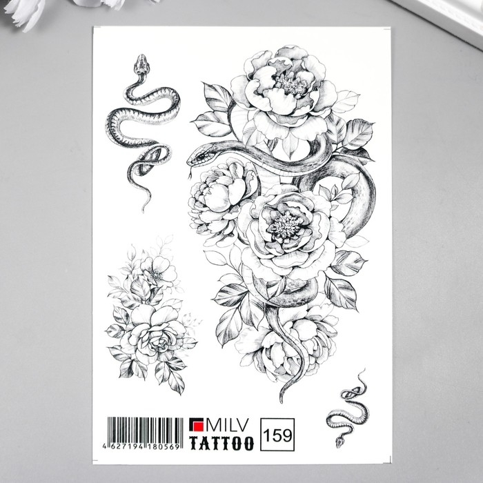 Татуировка на тело "Змеи в цветах" 10х15 см