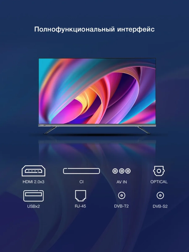 Телевизор поддерживает технологию Smart TV на базе операционной системы Android, благодаря чему вы сможете наслаждаться доступом к большому количеству контента из интернета. Вы сможете смотреть фильмы, сериалы, спортивные соревнования и многое другое в высоком качестве.